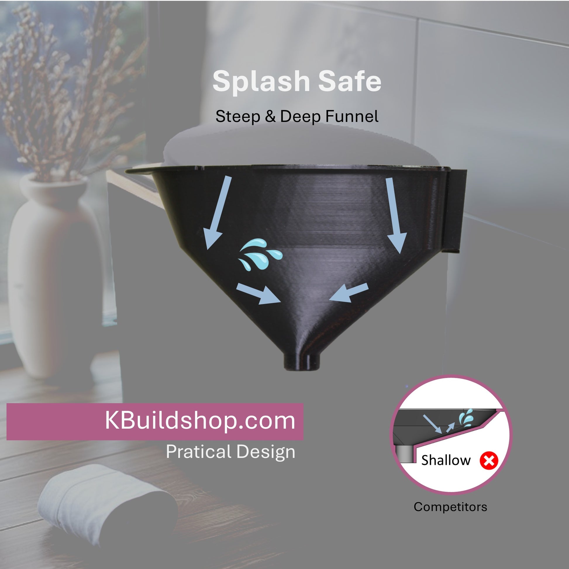 Elongated seat allows ample room for “business”. No need to “aim”. As a matter of fact, it may be the widest you can get.