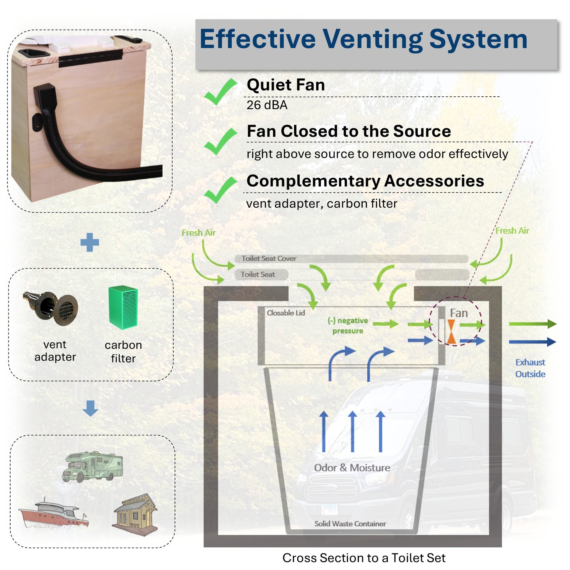 I've been using the compost toilet I recently purchased online, and I couldn't be happier with my choice! One of the standout features is the large opening, which makes it incredibly comfortable and convenient to use. The Kohler seat truly feels like home, providing the same comfort and familiarity as a traditional toilet seat while I was sitting in my Camper Van. Also, the fan helps the toilet odor-free. Cleaning was easy, I can lift the container from the box. I certainly recommend this product who needs comfort and cleaniness when you are on the road.